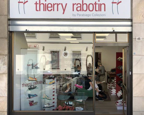 من أجل البقاء على مقربة من عملائها، افتتحت شركة Parabiago Collezioni منفذًا لها في Via Santa Maria، في وسط Parabiago، المدينة التي يقع فيها مصنع أحذية Thierry Rabotin.