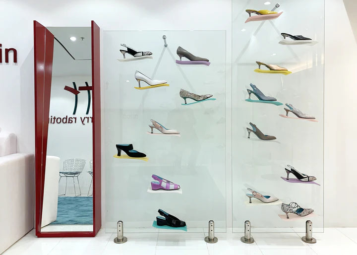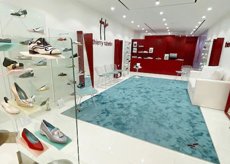 يعكس مفهوم تصميم المتجر عالم تييري رابوتين ضمن أجواء ترحيبية وحميمية تثمن جوهر الأحذية.